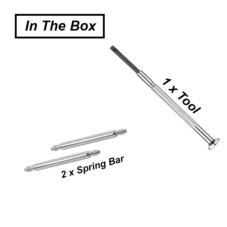 - IN THE BOX :: 1 x STRAP, 2 x SPRING BAR, 1 x TOOL